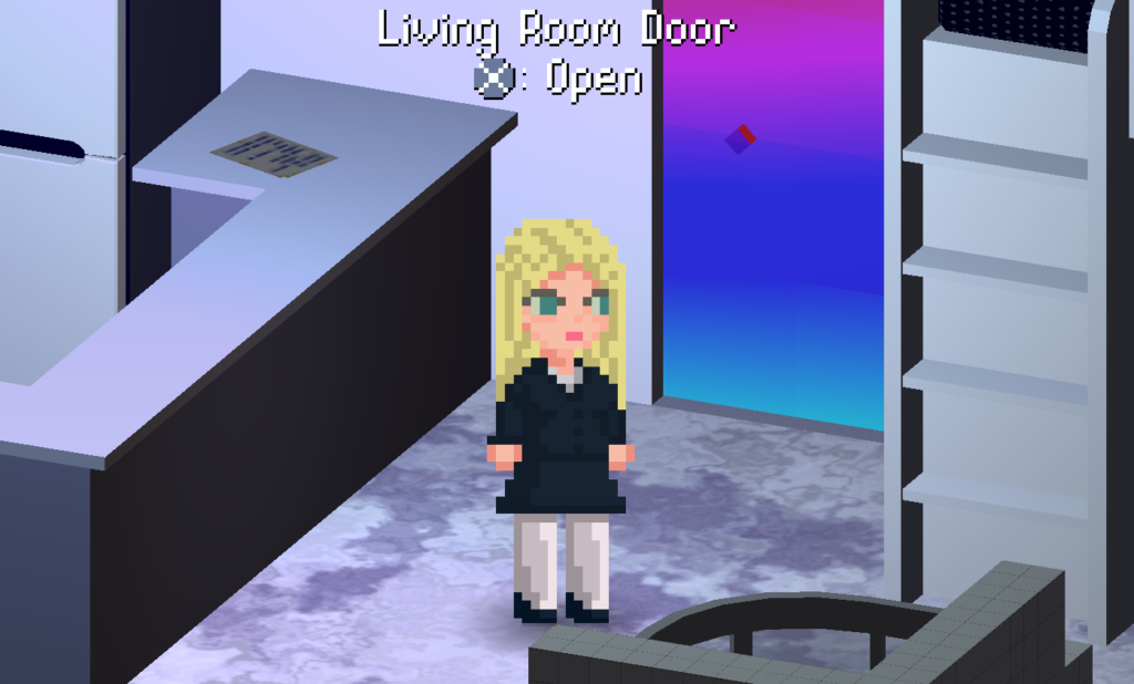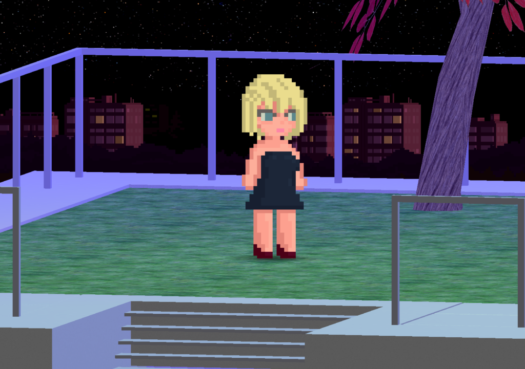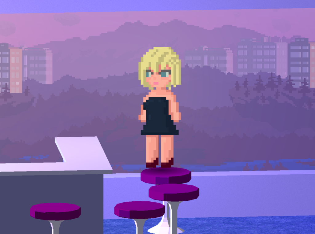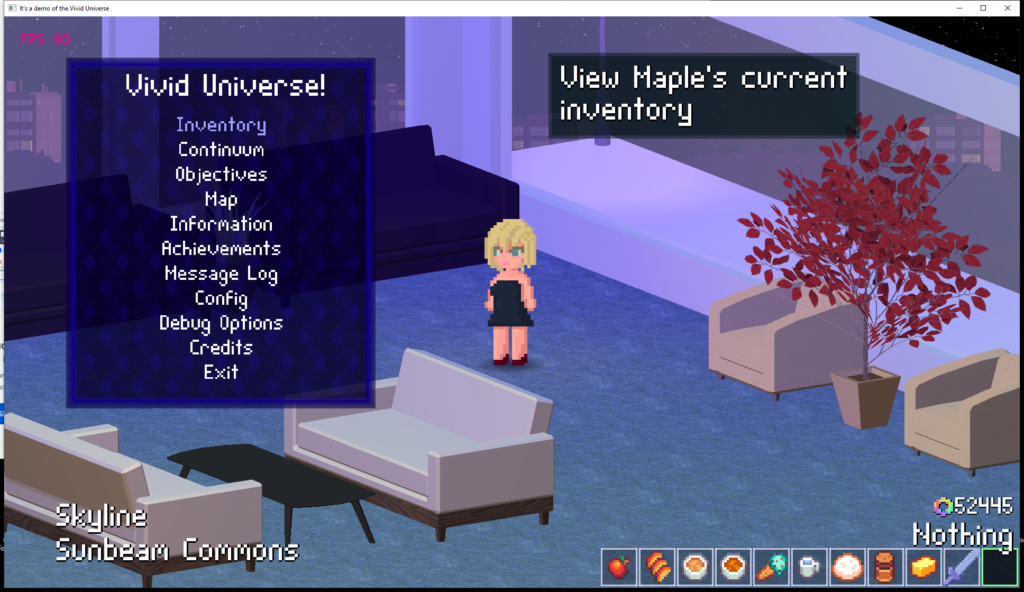 Maple at her new apartment, in the skies above a world in the vivid universe.