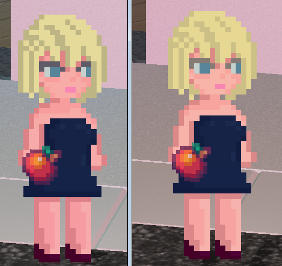 Before and after. Some pretty minor changes to Maple’s palette to lower her saturation overall a bit.